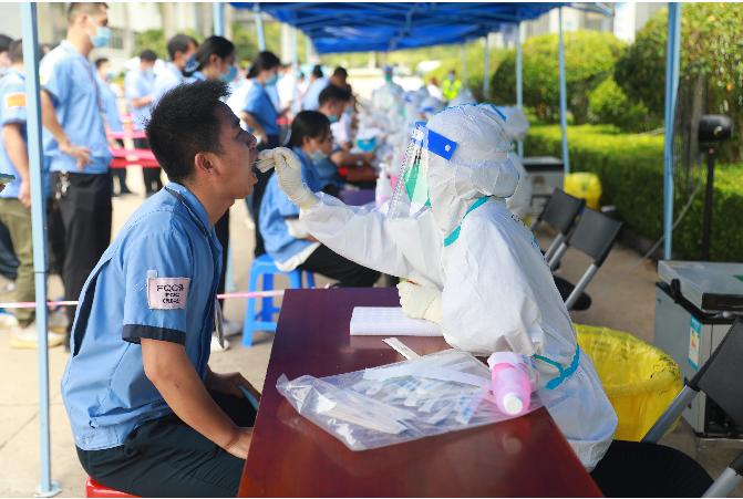 公司積極響應(yīng)市委市政府號召,嚴(yán)格貫徹落實各項疫情防控指令,6月22日上午,在惠陽區(qū)淡水街道辦社區(qū)服務(wù)中心統(tǒng)一組織下,公司全體在職職工、駐廠進(jìn)行核酸采樣。經(jīng)過近10個小時的連續(xù)奮戰(zhàn),最終完成8700多人的核酸采樣,當(dāng)天送到廣州檢測后,結(jié)果顯示全為陰性。